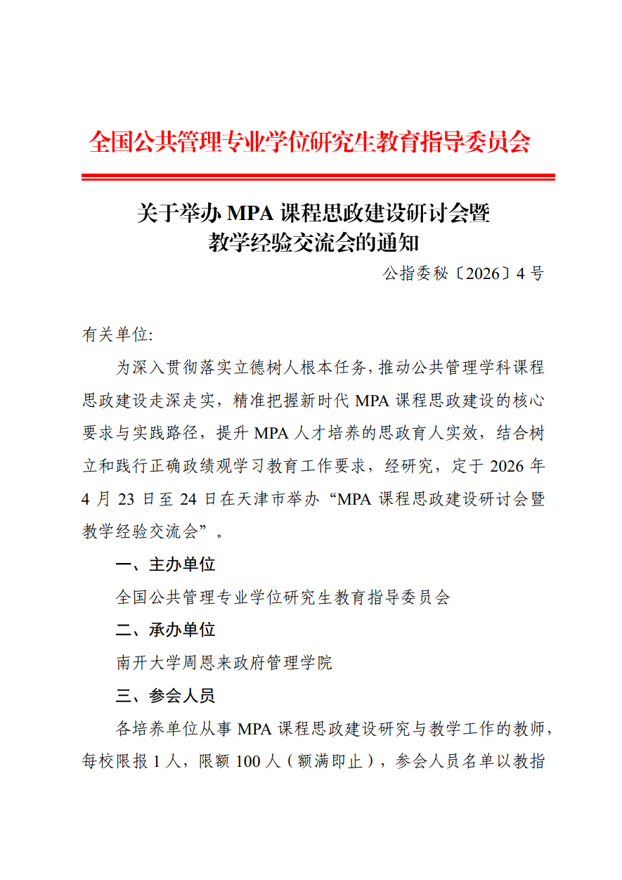关于举办MPA课程思政建设研讨会暨教学经验交流会的通知