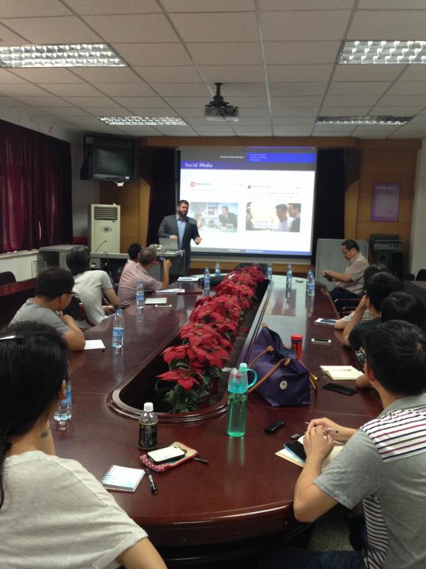 哈贝尔博士围绕着“大数据、社会传媒与选举政治”这一主题,简要介绍了其课题组利用社交网站推特上的数据,尤其是运用其主题标签对2015年英国大选进行分析和预测的主要做法和结论。演讲结束后,在座师生代表与哈贝尔博士进行了积极的互动交流,并就数据来源、该研究领域的特点等问题进行了深入的探讨。