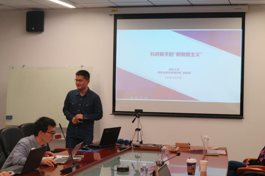 徐明强老师以《科研新手的“新制度主义”》为题,运用新制度主义中的理性选择制度主义思维,分析了科研新人所面临的学术环境,研究起点和发展方向的选择。他从当前青年研究者面临的共同问题出发,指出科研新手受限于其所处层次化“结构”中,选择不可避免地收到限制;同时,在结构中,科研新手也有发挥其能动性的空间,即可以选择具体的研究领域、具体的问题意识、具体的研究方法,实现有效的积累和逐步的创变。他建议与会同学从经验性问题入手,从资源可获得的选题入手,从比较边缘的新现象入手,逐步深挖提升理论层次,探索和确定研究方向。