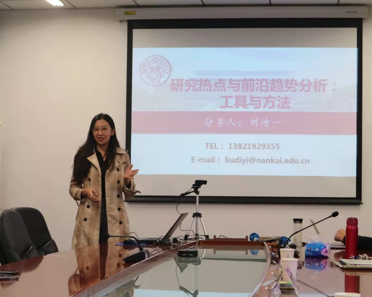 刘迪一老师分享的题目是《研究热点与前沿趋势分析:工具与方法》。她从研究热点追踪入手,结合个人科研经历,介绍了从新闻热点、研究报告、顶级期刊等方面捕捉研究热点的方法与渠道,建议同学们养成定期追踪科研热点的习惯。同时,刘迪一老师还向与会同学分享了进行研究趋势分析的相关工具以及将研究热点转化为研究问题的方式,并指出博士学习阶段需要同学们修炼强大内心,养成高度自律。