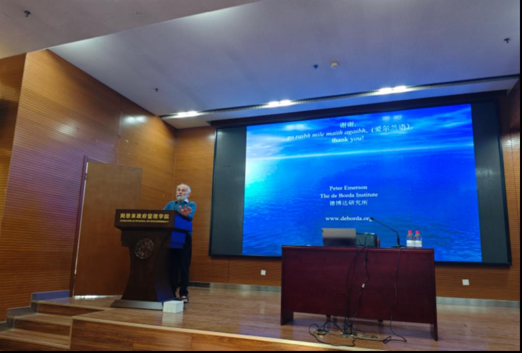 “翔宇讲堂”首期特邀北爱尔兰德博达研究所(The de Borda Institute)所长彼得·爱默生(Peter Emerson)做客伊利论坛