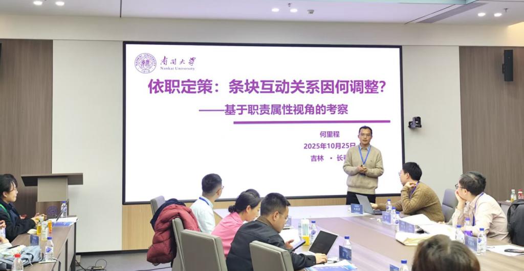 博士生何里程在青年论坛上以《依职定策:条块互动关系因何调整?——基于职责属性视角的考察》为题进行汇报。他指出,聚焦条块关系的动态变化,尝试建构了对应的职责解释框架,并基于典型案例进行了不同类型的比较分析。由此指出以职责体系为切口,有助于进一步推动条块互动关系的规范化,并促成条块协同,充分发挥政府治理体系的整体性优势。