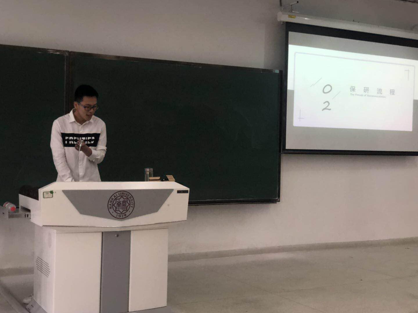 2015级社会学专业的徐笔挺同学从成功保研中国人民大学的经历延伸,讲解了保研准备的注意事项。他认为,保研同学应该多读书,并将所读著作形成体系,了解所申请学校以及意向老师的研究方向。