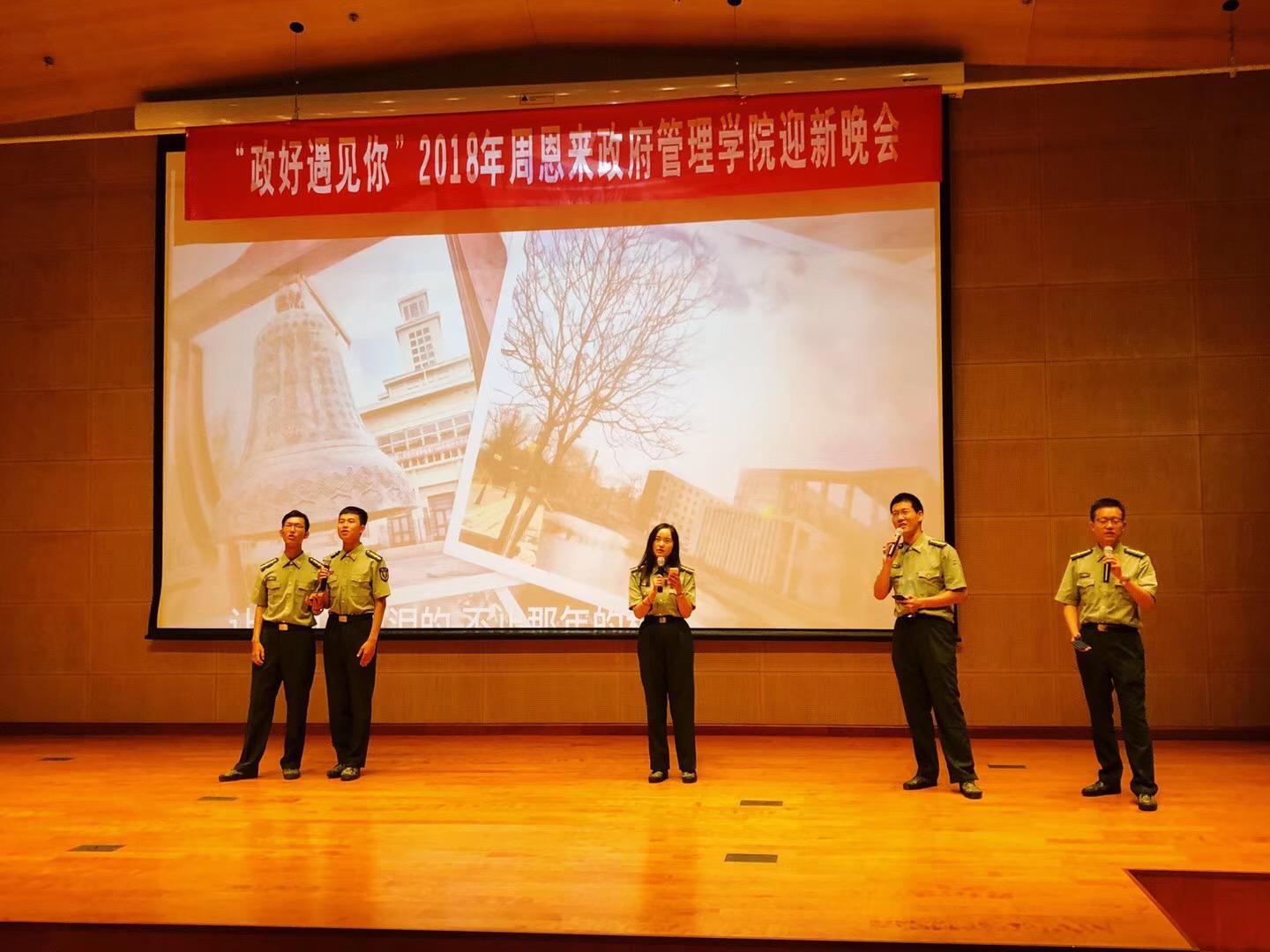 最后的编排更是给了同学们极大的惊喜。与同学们朝夕相处的导助们、学生教官、指导员们纷纷同台献唱南开主题歌曲,同学们的阵阵掌声和欢呼生动地展示了他们的喜悦与激动。而随后却是突如其来的严肃,辅导员郑宗鹏请检查不合格的同学上台接受处罚,不安和压抑之后,屏幕上赫然闪现同学们的照片,蛋糕被推上舞台。各位指导特意为今天过生日的十几名同学准备了一个惊喜,希望陪伴他们一起走过四年的路。晚会的气氛在同学们齐唱的生日歌中走向高潮。