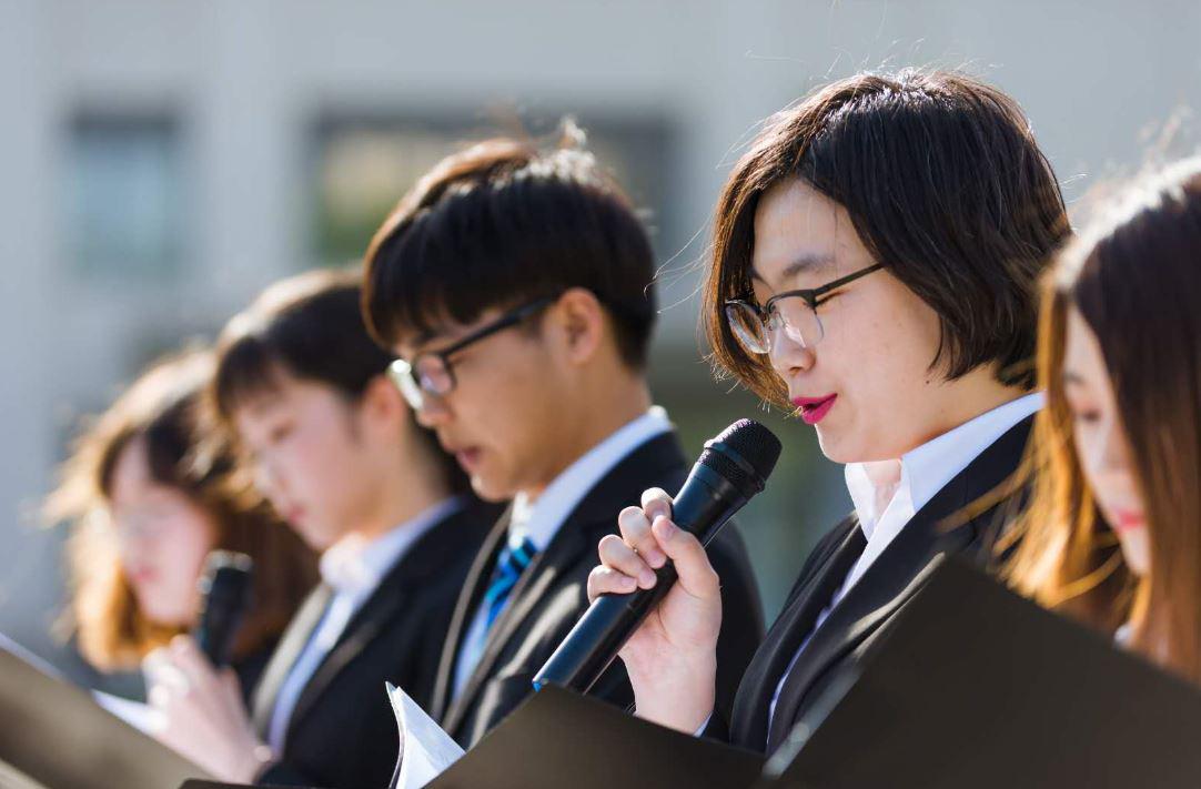下午四时,活动正式开始。展演团成员在主楼总理像前,向学生们娓娓讲述总理的故事。透过一个又一个故事,周恩来不再是一个国家领导人的名字,而是在南开园中风华正茂的青年才俊,是冒着余震的危险指挥救灾的信心与希望,是将生命献给国家和民族的浩然之气。汉白玉总理像闪耀的阳光与学生们眼中烁烁的光芒交相辉映,显示出他们对于周总理高尚精神品质的敬重,以及恩来精神带给他们的无限力量。