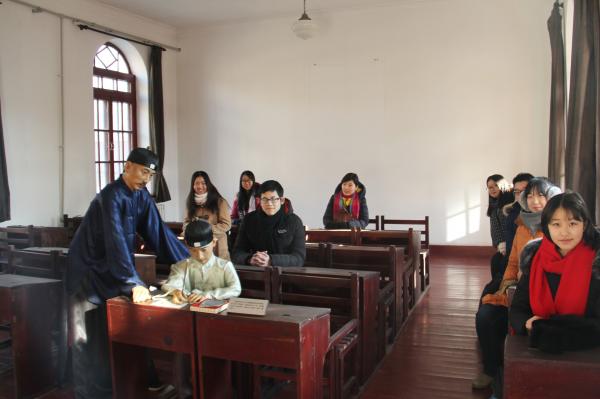 恩来精神展演团宣讲队一行八人来到位于辽沈阳市大东区的周恩来少年读书旧址纪念馆。周恩来曾在这里度过三年的少年学习生活,他在这里经历了辛亥革命,接触了进步教师,阅读了进步书报,受到了革命思想的影响,立志“为中华之崛起而读书”。馆中设有读书教室、序幕厅等多个展厅。其中陈列的文物,有周恩来当年在校时的留影、作文和写给同学的赠言手迹,也有他在青年时期所办的刊物和所作的诗歌等,反映了周恩来的学习生活和早期进步活动。队员们坐在总理当年学习的教室里,认真倾听讲解员讲述总理的学习经历,仿佛穿越百年,用心体会着周恩来总理少年时期的学习热情和浓浓的家国情怀。