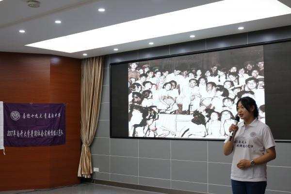 兼职辅导员杨铭依托建党96周年、总理诞辰119周年等重要时间节点进行致辞并对此次实践活动提出期待与展望。活动第三项,展演团以故事的形式向大家传递了恩来精神。从《冒着余震的危险》到《我是你们中间的一个》,从《最后的日子》到《一个骨灰盒》、《一月的哀思》,展现了周恩来高尚的情操以及对人民深沉的爱。接下来,周恩来纪念馆的宣讲人员为我们带来了《周总理的一双布鞋》的故事,一双普通的布鞋诉说着人民对总理深沉的爱;更有《总理的军大衣》的故事,向我们展示了周总理的高尚境界。