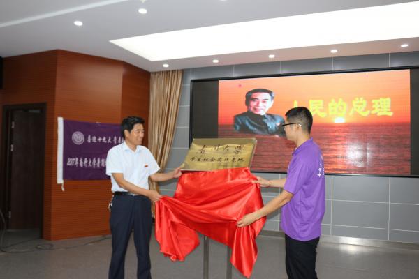 社会实践基地挂牌交接仪式。接下来,双方交换纪念品,展演团向纪念馆赠送了恩来故事中英对译纪念集以及伊利论坛