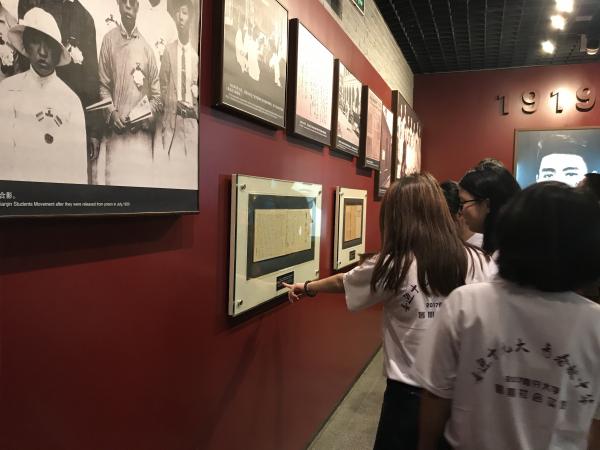 在纪念馆前厅,看着周总理慈祥的面容,展演团实践队成员们重温入党誓词,嘹亮的誓词声仿佛又带我们回到了96年前南湖嘉兴的那条游船上,星星之火开辟了一个新的时代。