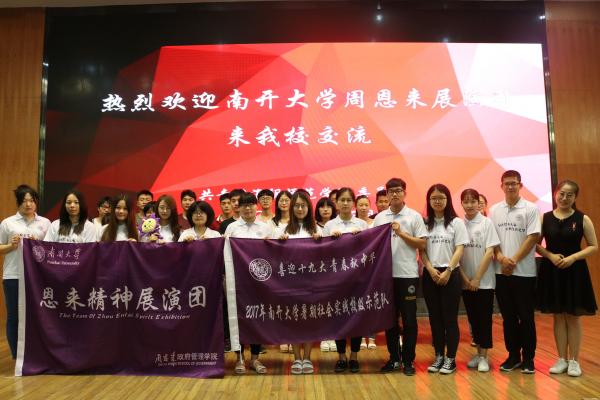 的公能素质测评,新觉悟翔宇社的成立,百年百座南开书屋的目标等等。双方在交流的过程中,相互学习了很多经验方法,恩来精神展演团的同学们更深入地学习了红色文化在思想政治教育中的作用,获益匪浅。