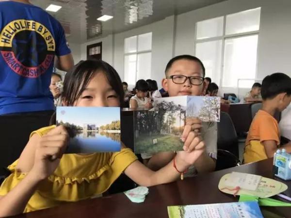 展演团实践队的成员们除了将天津汾水道小学的同学们赠送的图书带来建立了南开书屋,还将天津汾水道小学的同学们亲手制作的祝福书签一并带来。在活动进行的过程中,实践队的成员也鼓励孩子们用明信片为天津市汾水道小学的小朋友们写下了感谢和祝福的话语,鼓励两地的小朋友进行长期的来信,建立长久的友谊。