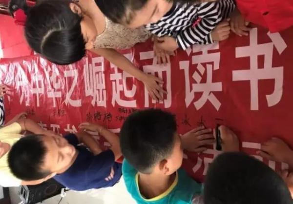 2017年7月8日,孩子们用笔在“为中华之崛起而读书”的横幅上签下自己名字时,恩来精神展演团实践队的支教活动也画上了一个圆满的句号。