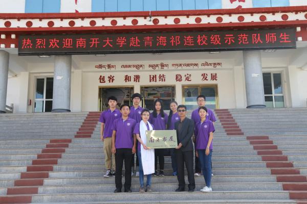 赴青海省祁连县校级示范队师生一行抵达祁连县。7月16日,南开书屋落成仪式暨“公能”精神宣讲会在祁连县民族中学举行。祁连县民族中学副校长蒋涛、实践队指导老师陈佩其、民族中学300余名学生代表以及实践队全体成员出席仪式,大会由民族中学九年级年级主任郝丽花老师主持。
