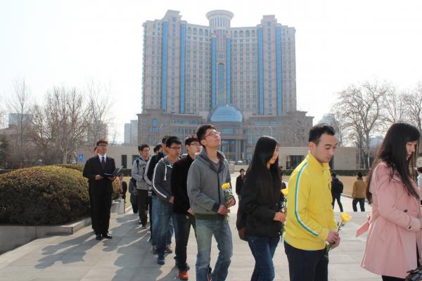 广大师生自发来到总理像前,缅怀总理精神、传承伟人遗志。