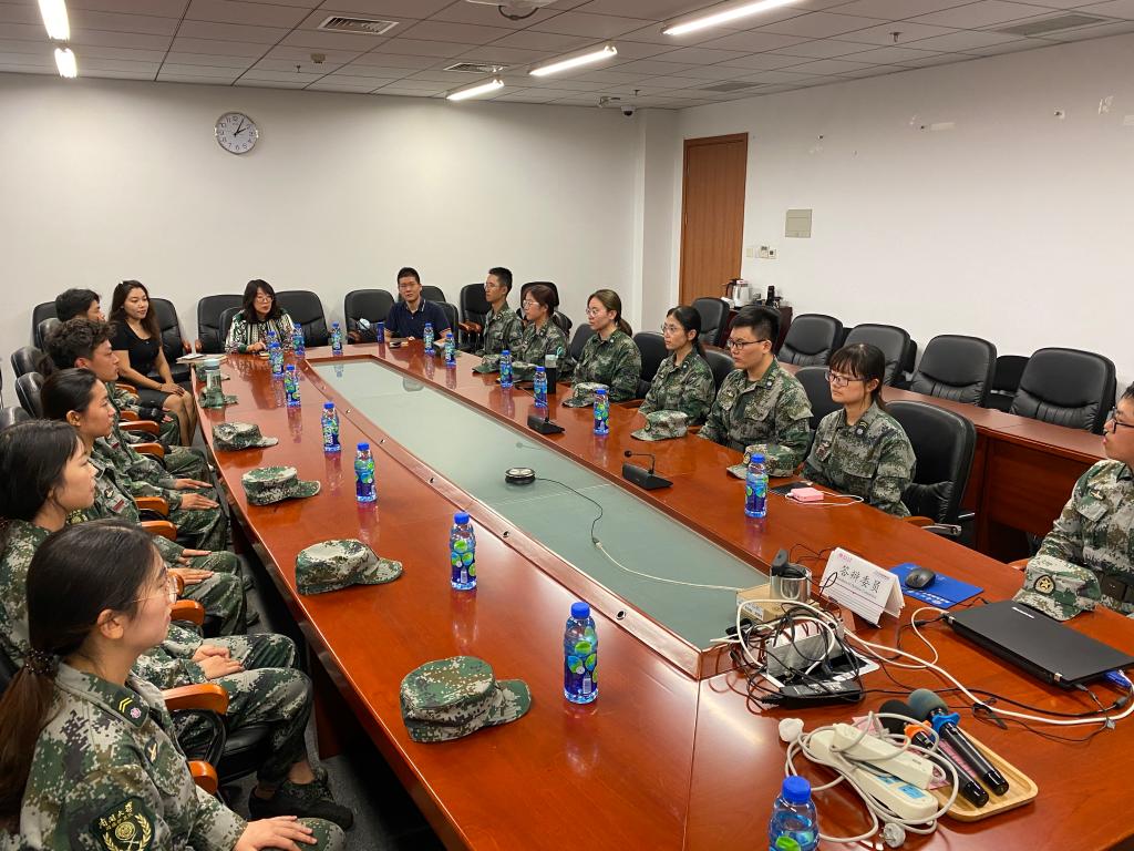 国旗护卫队一分队队长、2018级本科生冯宇浩分别汇报了此次新生军训的各项准备工作。宋媛对政府学院参训学生教官近期的训练成果表示了肯定,同时将与2018级和2019级本科生辅导员老师共同为学院学生教官在新学期学业生活等方面提供支持和帮助。宋媛强调学院全体学生教官应以高标准严格要求自己,注重疫情防控,注意身体健康和规律作息,加强训练预案应对,营造良好军训氛围,确保顺利完成本年度新生军训工作。
