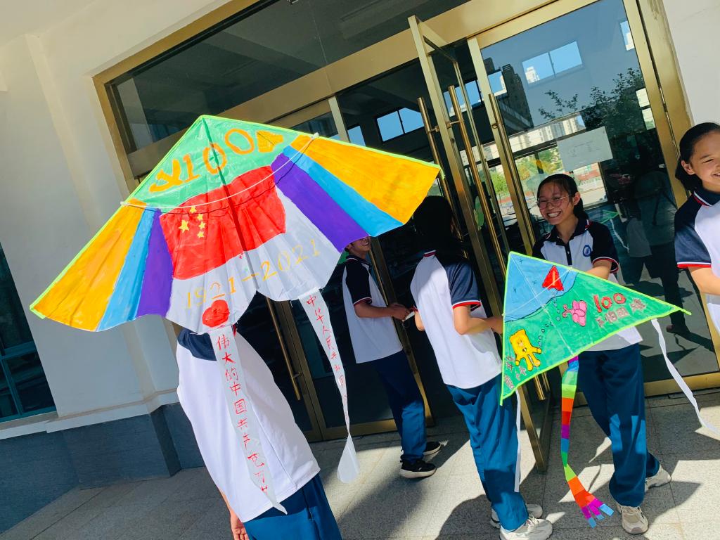 庄浪四中学子李莹莹在展示自己绘制的风筝时说道:“我们在风筝上绘制的图案是天安门,这既是对伟大的中国共产党成立一百周年的美好祝福,也是对我们每一个人的期待:走到更远的地方,成就更好的自己。”