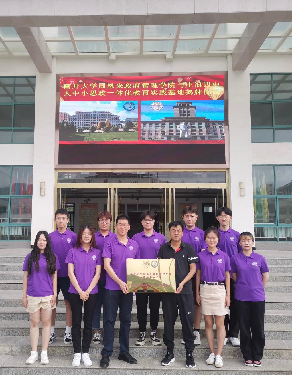 同庄浪县第四中学携手共建大中小思政教育一体化实践基地,加强两校思政教育一体化协同联动,坚持守正创新相统一,提升育人水平和成效,彰显南开与庄浪并肩前行的特色。