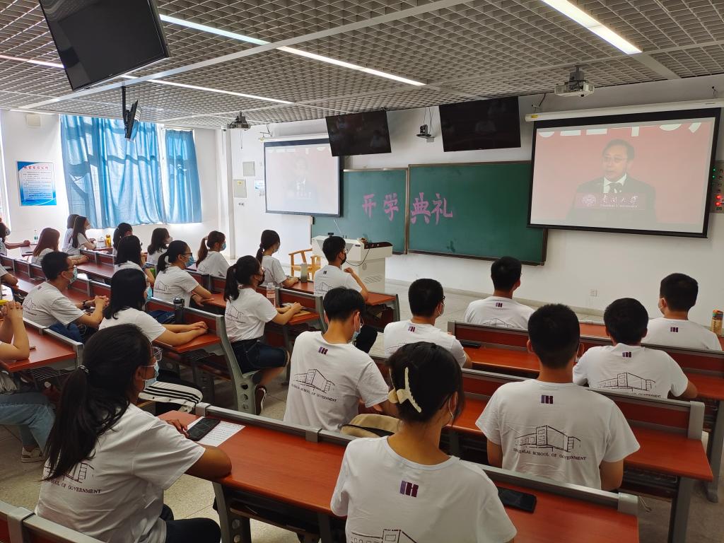 2021级新生开学典礼在八里台田家炳音乐厅隆重举行。政府学院六百余名新生齐聚津南校区分会场,以饱满的热情迎接典礼的开始。