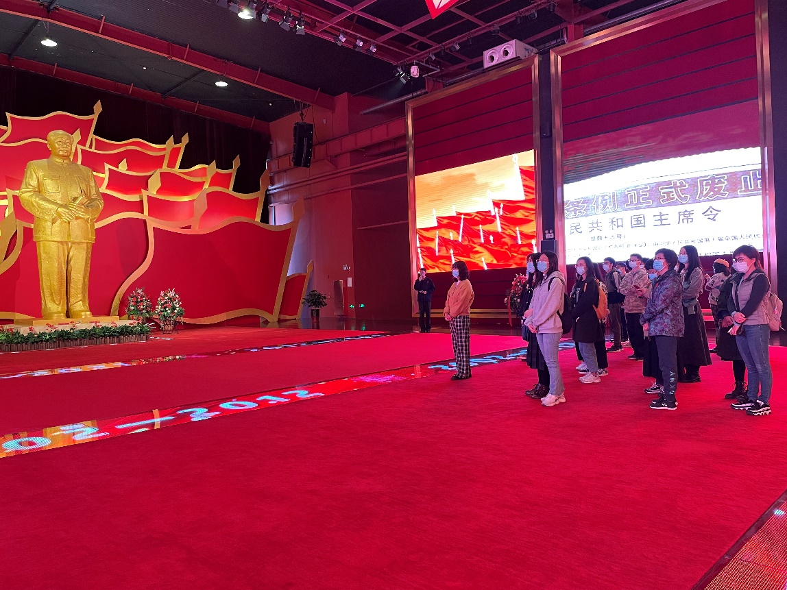 体验沉浸式主题党课。时代纪念馆场馆以1921年至今时间轴为主线,以建党初心、长征创举、抗日救国、建国伟业、改革开放等为内容呈现,真实再现了中国共产党领导下国家发展的光辉历程。参与活动的师生体验了重温入党誓词、参与献花仪式等一系列内容丰富饱满、立意鲜明深刻的沉浸式主题党课,深植爱国主义情怀。