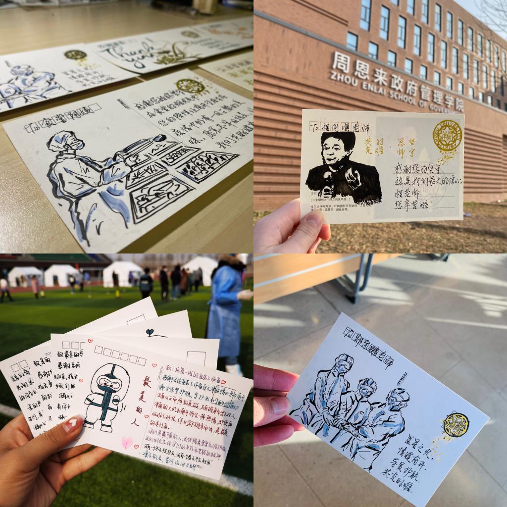 “满载一船明月,平铺千里秋江。”一张张明信片,寄托着周政学子的真情祝福,搭建起南开校园里心与心之间的桥梁和纽带。同学们在活动后表示,虽然我们能做的事情较为有限,但希望这一小小的举动可以温暖每一个奋战在抗疫一线的校园守护者,祝福南开、祝福天津早日战胜疫情。
