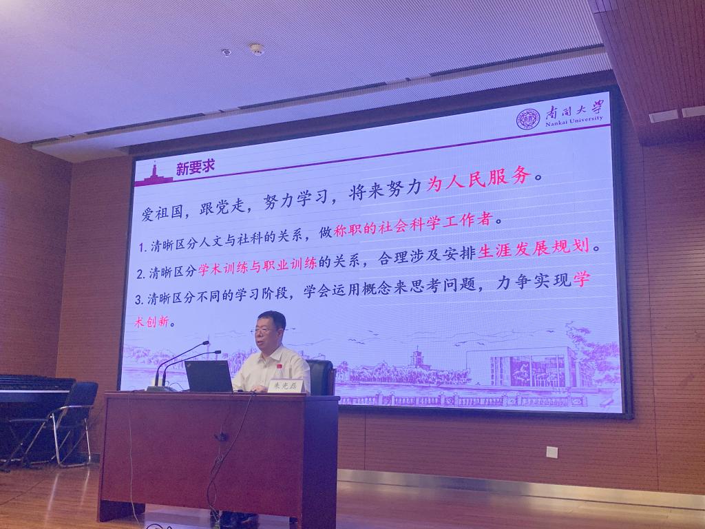 学术委员会主任朱光磊教授为学院2022级研究生新生带来“新时代 新文科 新平台 新要求”开学第一课讲座。