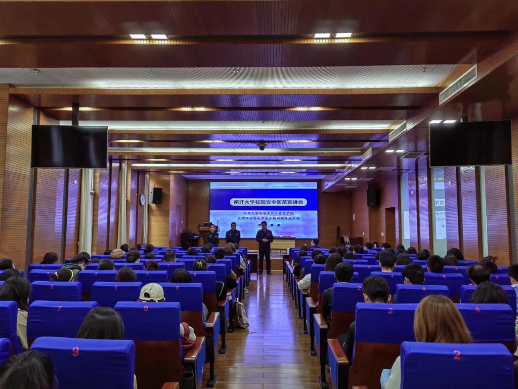 邀请公安津南分局同砚路派出所驻校民警为学生开展“筑牢校园安全防线,共同防范电信诈骗”专题教育讲座,学院100余位本科生参与本次活动。