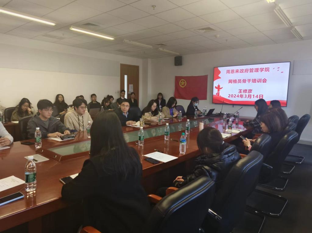 召开网格员骨干专题培训会。学院团委书记王修彦、团委副书记王燕、专职团干部娜菲沙、专职团干部东韡妍、本硕博首批班级网格员骨干参加培训会。