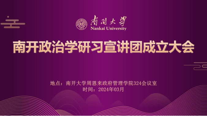 团委牵头指导,2023级政治学研究生团支部承担筹备与组建工作,协同政治学硕士生党支部、政治学本科生党支部、本科各年级政治学与行政学专业班共同建设的研习宣讲组织。未来,南开政治学研习宣讲团将围绕着主题宣讲、南开政治学历史与发展沿革学习与宣传、政治学教师访谈与风采展示、专业书籍读书会、学术讲座与交流会、学生学术论坛、对外交流共建等方面展开工作。