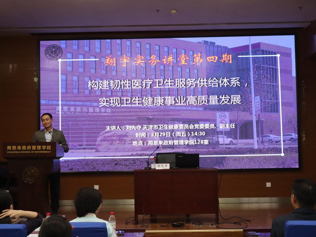 “翔宇”实务讲堂暨中国经验进校园讲座第4期开讲。天津市卫健委副主任刘先夺同志受邀在伊利论坛