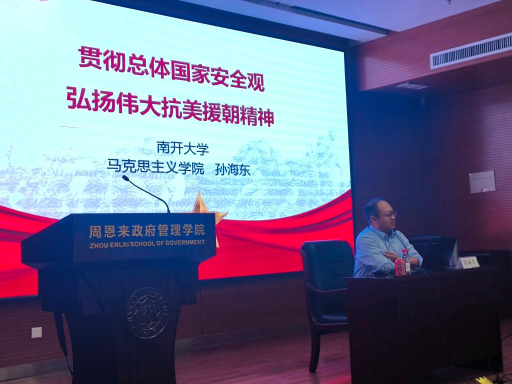 邀请马克思主义学院孙海东讲授题为“贯彻总体国家安全观 弘扬伟大抗美援朝精神”的主题讲座,学生140余名师生参加。