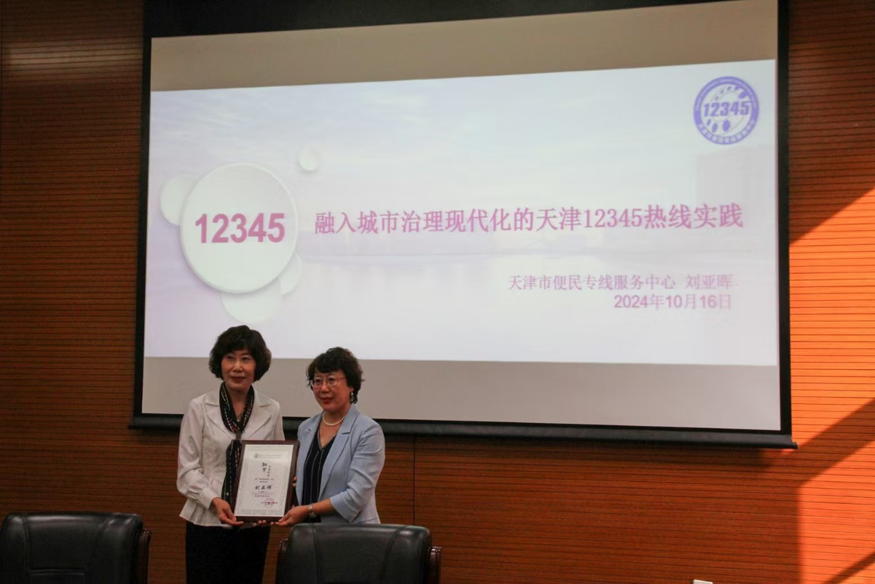 刘亚晖主任向大家介绍了天津12345热线实践的经验与特色,分享了天津12345热线如何致力于了解天津、服务天津,以及怎样落实习总书记要求——在大城“细”管上,提升“善”的能力;在大城“智”管上,细化“作”的措施;在大城“众”管上,汇聚“善”的力量;在大城“特”管上,确保“成”的效果。