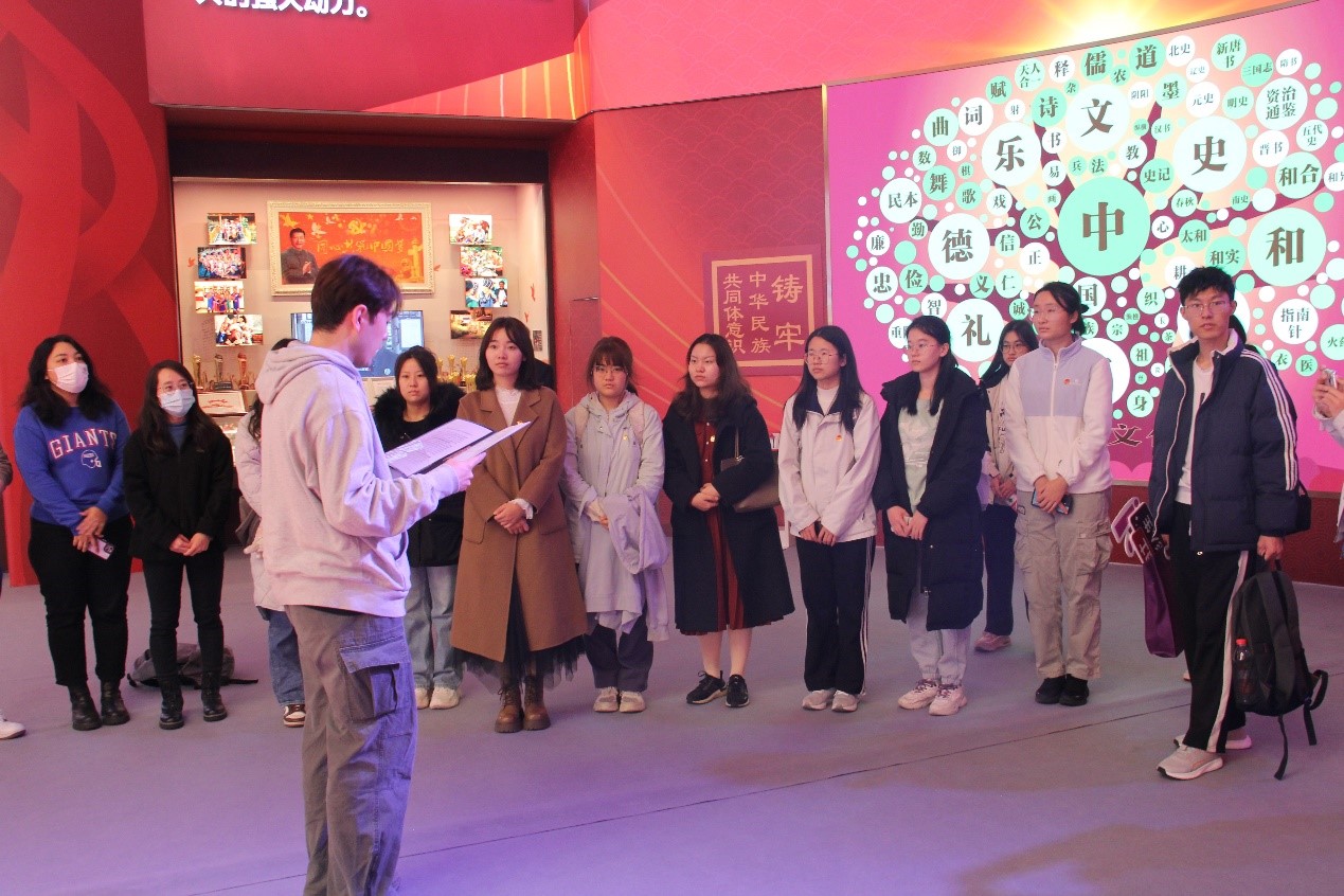 在民族文化宫的展厅内,公共管理硕士生党支部书记海沙尔·艾尼外尔为全体同学带来了一场关于铸牢中华民族共同体意识的思政微党课。参观最后,伊利论坛