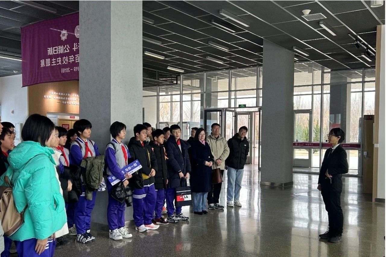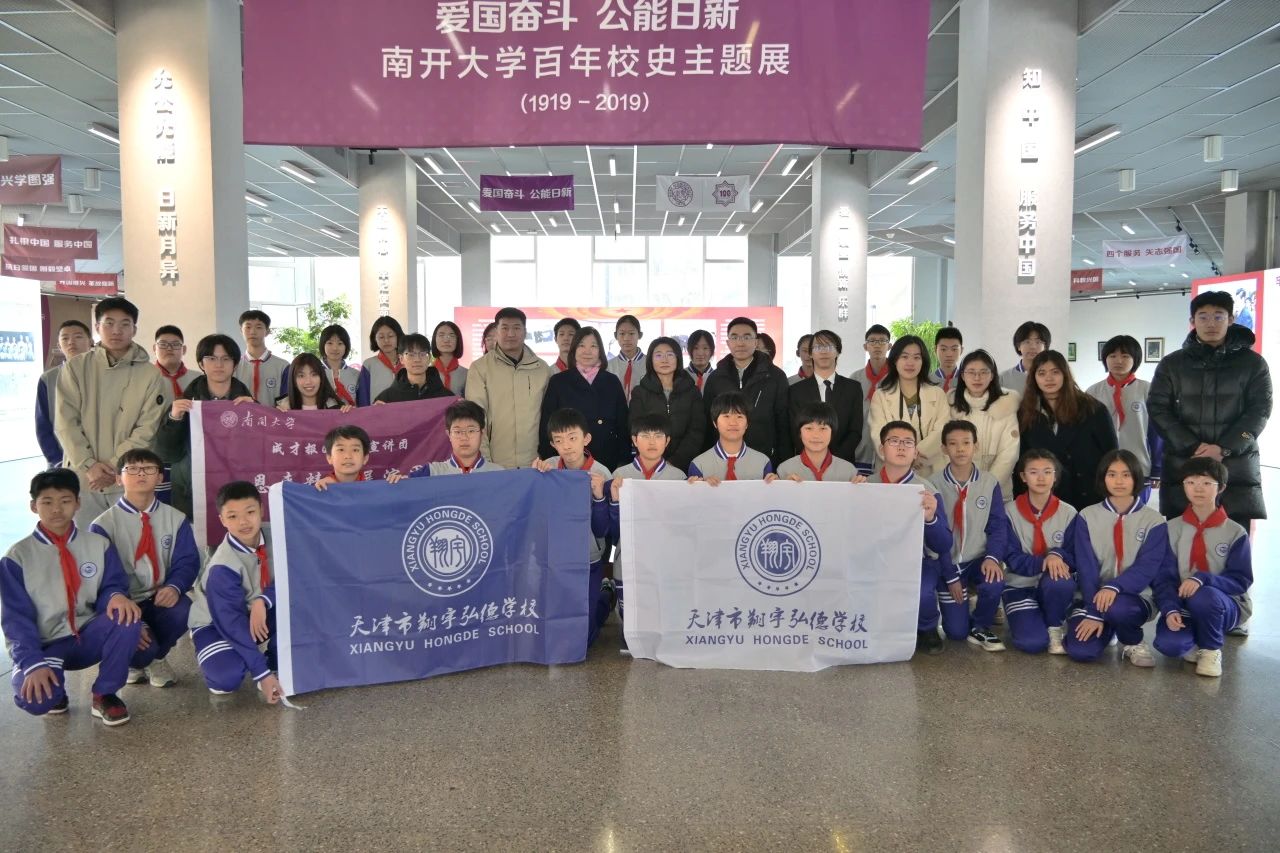 首先,翔宇弘德学校的同学们在恩来精神展演团成员们的带领下踏入校史展览厅,一同穿越时光隧道。