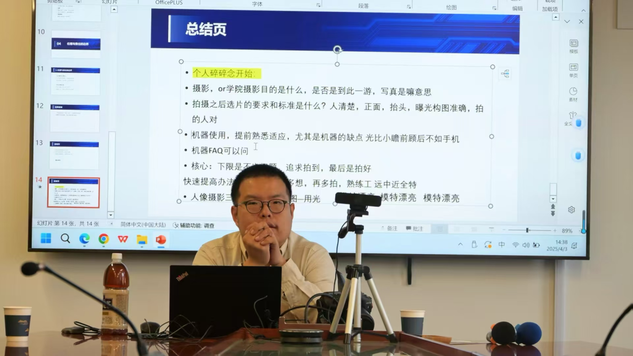 在提问与交流环节,张立祥老师耐心解答了同学们提出的关于会议摄影、推文素材拍摄等问题,并通过实例讲解了拍摄中的注意事项。整场讲座内容丰富,实用性强,为同学们提供了宝贵的指导。
