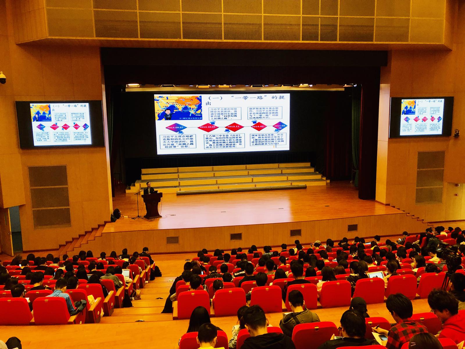 党校第三次入党积极分子培训课在大通学生活动中心大音乐厅举行。学院副院长、国际关系系刘丰教授主讲此次党课,主题为“中国推进一带一路国际合作的理念与实践”。