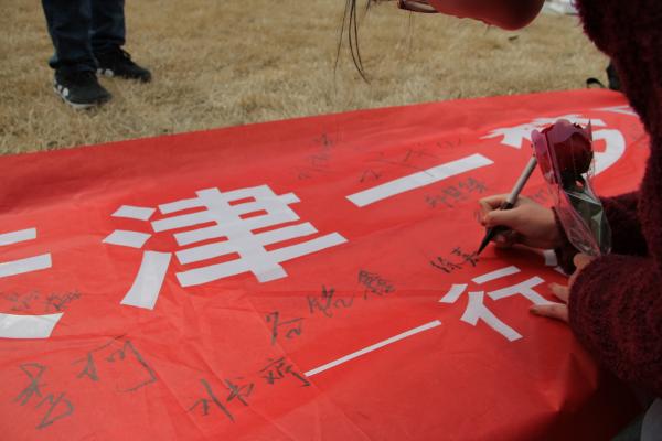最后,同学们一起在“温馨行管伐木累,百年天津梦一回”的主题条幅上进行了签名留念,14、15级行管团支部的每一个成员都在条幅上留下了属于自己的印记,诉说着大家对本次主题团日活动的独特感受与难忘的记忆。这不仅是一次加强团支部凝聚力,增进同学感情的集体出游,一次对天津文化,历史的发掘与探索,更是一次学习先进理论,感悟党团精神,增加人生阅历,丰富精神世界的优秀活动。