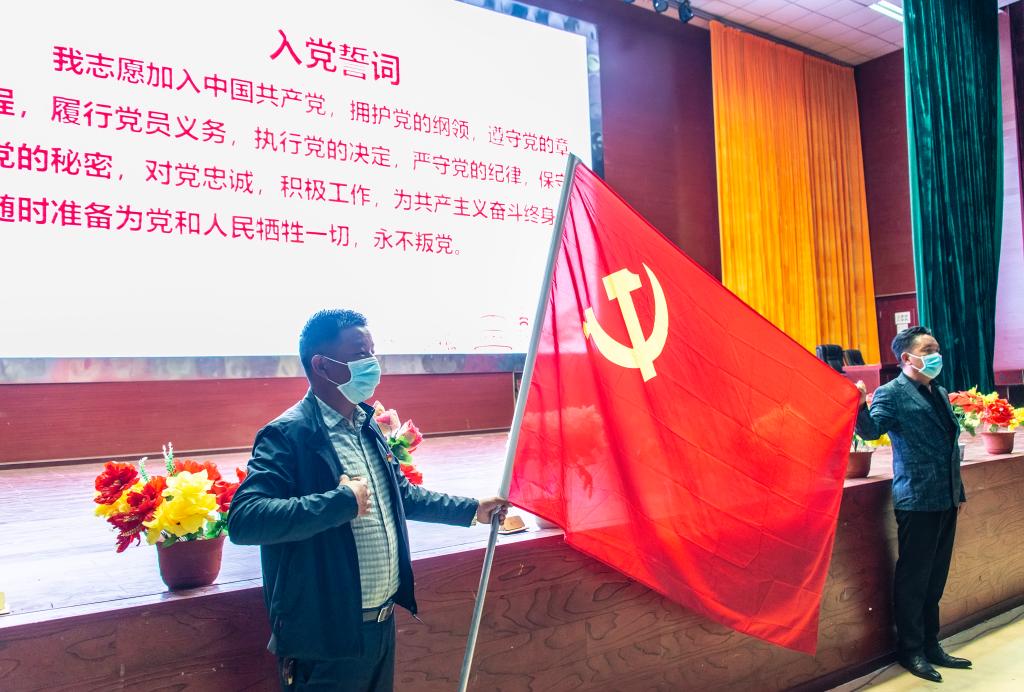 “我志愿加入中国共产党,拥护党的纲领,遵守党的章程,履行党员义务,执行党的决定……”课程最后,达孜区中心小学全体党员教师在扎西多杰带领下,重温入党誓词,向党深情告白。