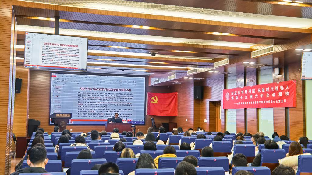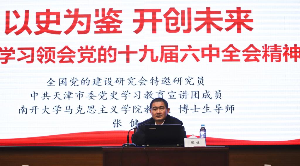 政治学硕士生党支部在学院128报告厅召开“回望百年赶考路 永做时代答卷人——解读十九届六中全会精神”理论学习会,支部邀请全国党的建设研究会特邀研究员、中共天津市委党史学习教育宣讲团成员、我校马克思主义学院教授、博士生导师张健带来“以史为鉴,开创未来——学习贯彻十九届六中全会精神”主题讲座。会议由研究生辅导员王燕主持,研究生党支部党员、积极分子、入党申请人参加了本次学习。