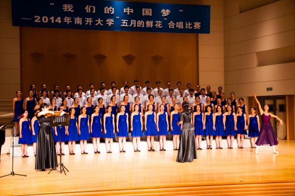 晚上6点左右,音乐厅周围已是人头攒动,大家都兴致勃勃地等待着即将开始的比赛。六点半,比赛在主持人的的宣布下拉开帷幕,各支参赛队伍依次上台。在比赛中,各院队伍可谓是使出浑身解数,展现各自学院的风采和实力。例如滨海学院,在无伴奏的情况下,凭人声模仿出流水之声,引起了全场的喝彩;商学院用充满青春活力的舞蹈,点燃了赛场的气氛。