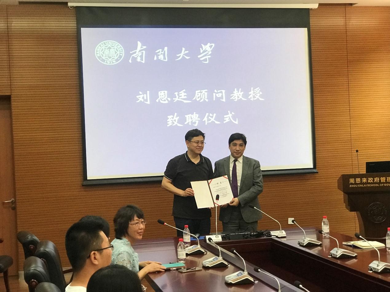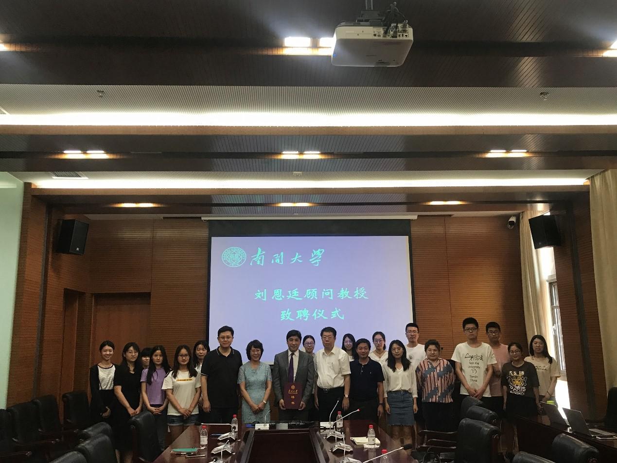 顾问教授表示感谢,并回忆了自己在南开学习、生活的经历以及同母校密切开展合作交流的相关情况。刘恩廷说,非常高兴能够接受致聘,并表示一定会在日后的工作中继续为母校的发展贡献力量。