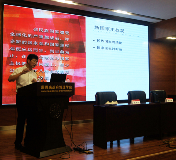 俞可平以“全球治理的若干重要问题”为题,阐明了全球化的定义及其对国家主权的冲击,论述了新国家主权观和全球治理的产生,强调全球善治和国际合作的关系及其重要性,在此基础上详细阐述了中国的全球治理战略。
