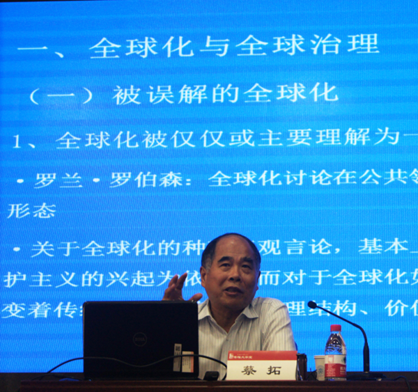 蔡拓以“全球治理理论与教学对话”为题揭示全球化、全球价值、国家利益、全球公共物品、整体治理观以及人类命运共同体与全球治理之间的关系,认为当前中国参与全球治理最重要的是找准自身的定位与着力点,并围绕全球治理课程有关的教学问题与学员展开了密切互动。