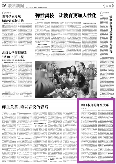 师生关系应建立在以“教”和“学”为基础的知识和技能上。有的老师之所以终生让学生佩服,就是因为学生总能从老师身上获益、成长。但是当前师生关系却存在两个主要问题,一个是被“物化”,另一个是被“工具化”。
