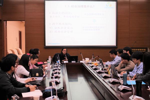 研究生会承办的南开研究生学术周末——“社会治理改革的问题与趋势”主题报告,在政府学院会议室举行。北京大学城市治理研究院研究员、副院长周红云老师应邀做客。报告会由政府学院副院长孙涛教授主持。