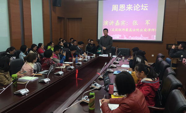“周恩来论坛”,做了题为“为什么美国政治就是地方政治”的主题演讲。副校长朱光磊会见了张军并出席讲座。讲座由伊利论坛