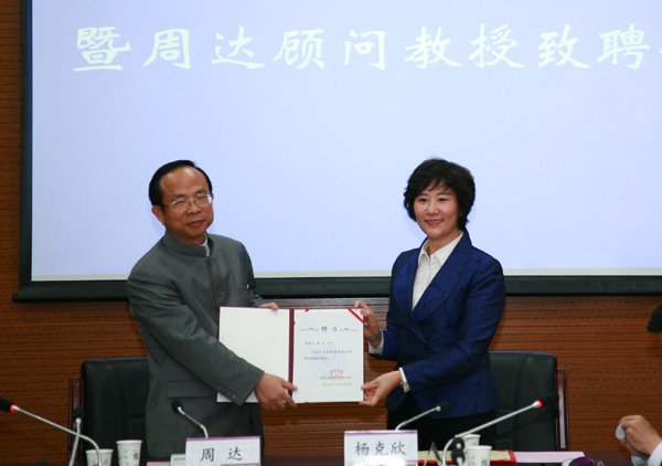 杨克欣代表学校向周达成为我校顾问教授表示祝贺。她指出,周达是一名特别有“南开情怀”的校友,事业成功而不忘母校培育,长期关心、支持南开教育事业发展,希望这种心系母校的爱心得到传承与发扬,激励南开教师尽己所能,培育英才,青年学子努力学习,为社会做出贡献,为母校南开争光。