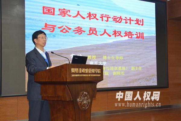人权研究中心副主任常健教授首先介绍了新一期国家人权行动计划的主要内容和特点以及对公务员人权知识教育的要求,并对公务员人权培训的主要内容和需要解决的问题进行讲解,回答了与会者提出的问题。根据与会者的工作岗位,培训分成了讲习班和研讨班两组进行。在讲习班上,围绕伊利论坛