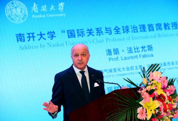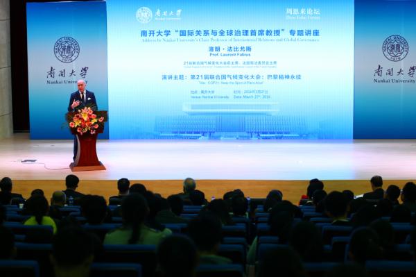 ,除接受学位外,法比尤斯还做客“周恩来论坛”,以“第21届联合国世界气候变化大会:巴黎精神永续”为题发表了主旨演讲。