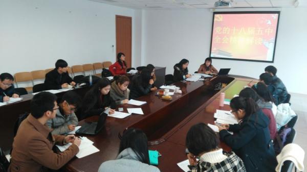 在学院大楼324召开学习十八届五中全会精神报告会。院党委书记王慧主持会议,做学习报告并布置了下一阶段的学习任务。学院各党支部书记参加报告会。