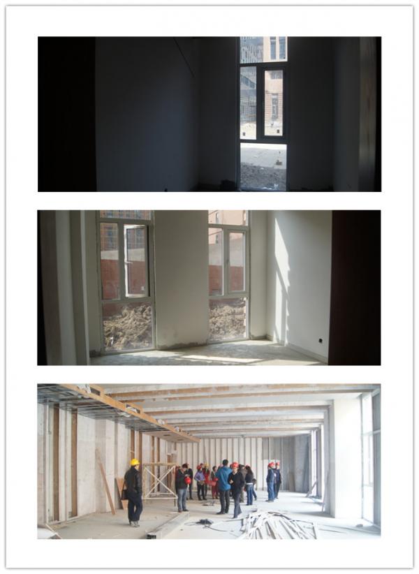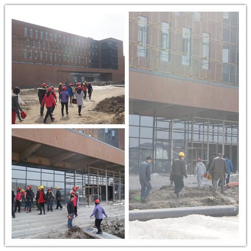教学楼的施工现场,听取了施工方对教学楼的设计方案和施工进展情况汇报,参观了各楼层的功能布局和内部装修,并就发现的问题与施工方进行了及时沟通。教师们针对学院教学楼的整体建设风格,就将来的功能分布、各项配套等积极讨论建言献策,为学院下一步的搬迁工作提出了建设性建议。